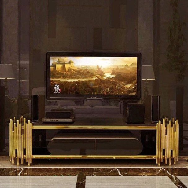 • Kệ có mặt bằng kiếng cường lực, khung inox mạ vàng