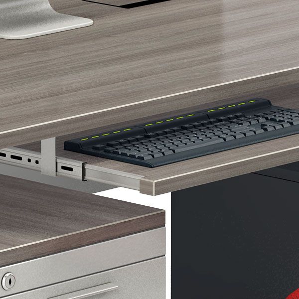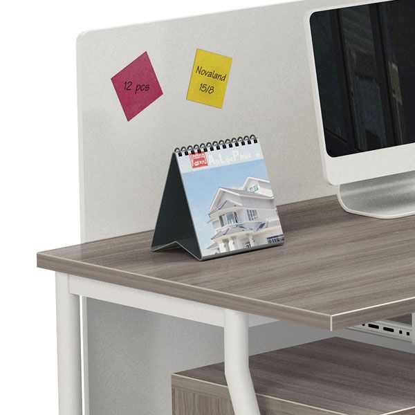 Các vật dụng đi kèm: 1 hộc di động, 1 kệ treo CPU, 1 khay bàn phím, 1 nắp lật hộp điện, 1 máng điện 3 khe, 1 dây quản lý cáp, 1 vách ngăn bàn kính màu/nhôm/thép (tùy chọn của Khách hàng)