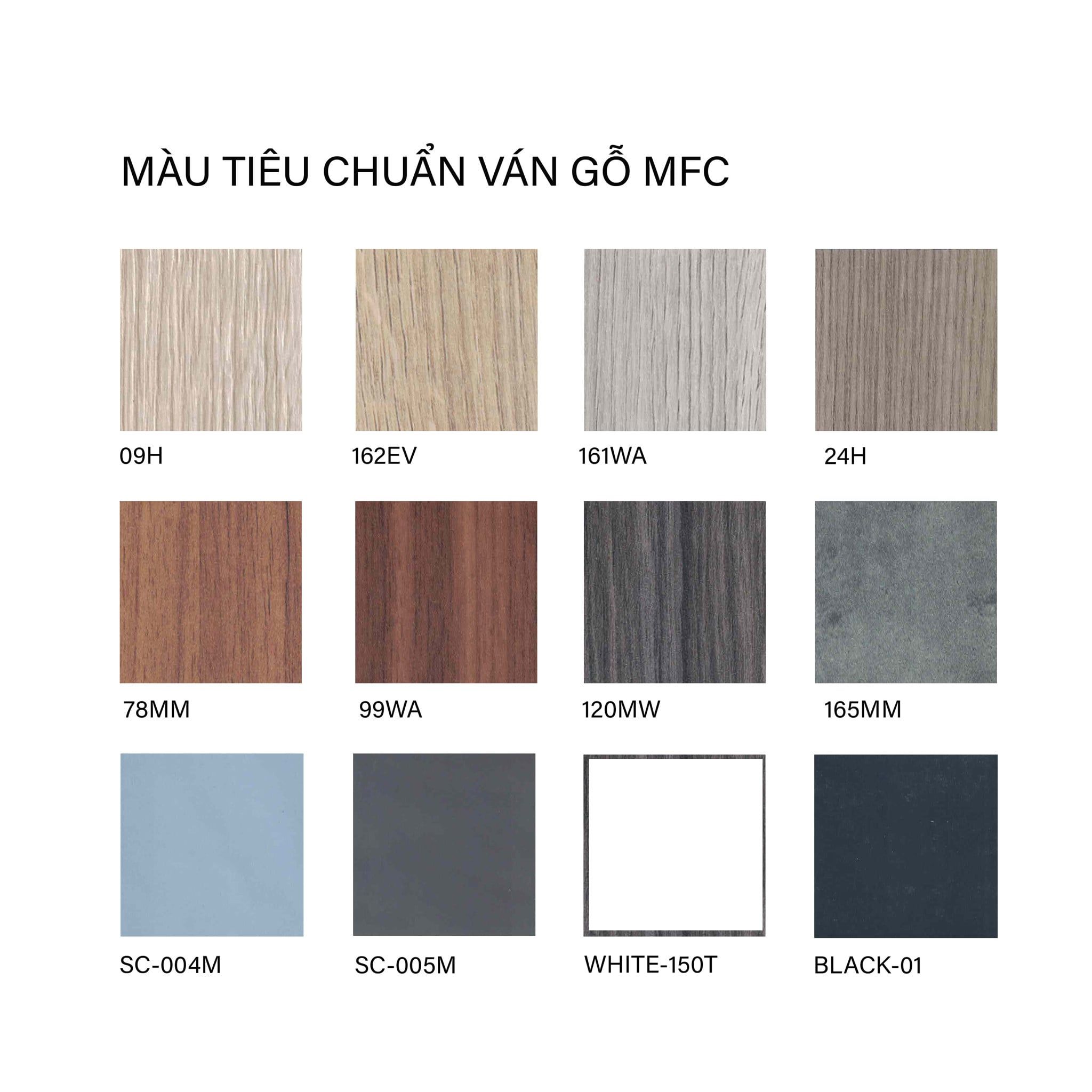 Chất liệu: MFC melamine màu vân gỗ, khung sắt sơn tĩnh điện cao cấp