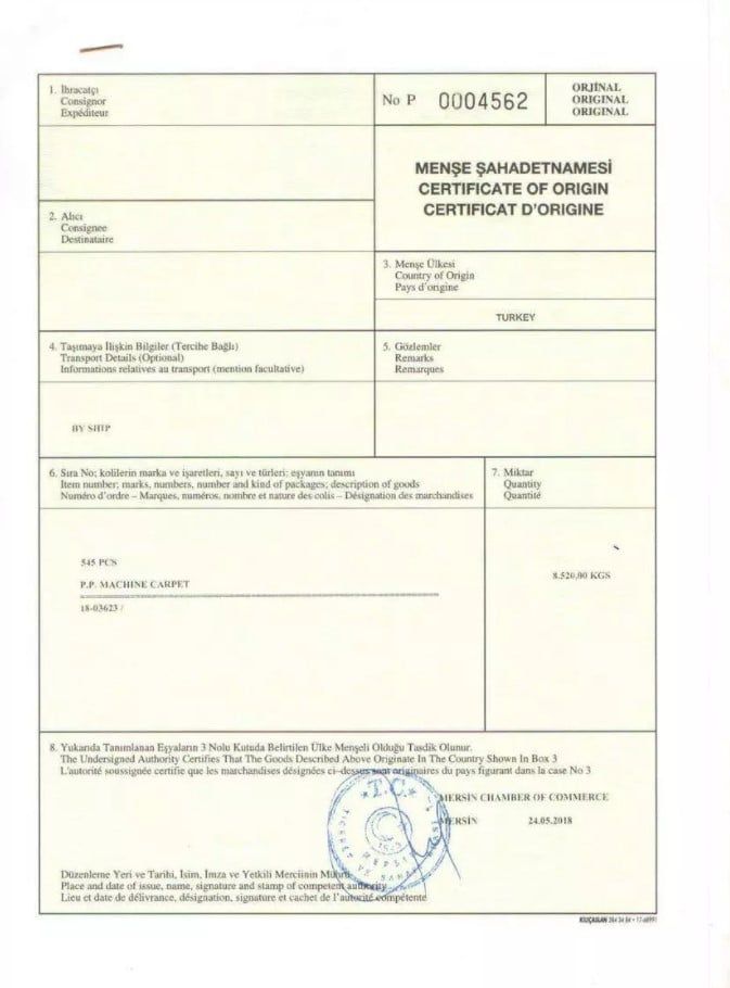 • Xuất xứ: Thổ Nhĩ Kỳ