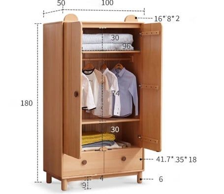 • Thiết kế 2 cánh mở kết hợp 2 ngăn kéo cung cấp không gian rộng rãi treo quần áo, để đồ dùng của bé ngăn nắp, gọn gàng