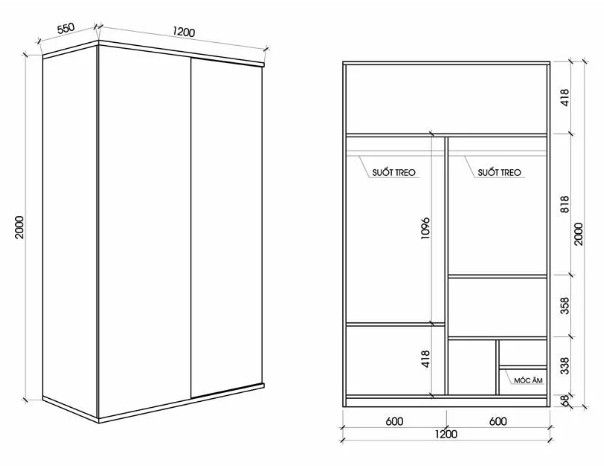 Kích thước (DxRxC): (D)1200 x (R)550 x (C)2000 mm