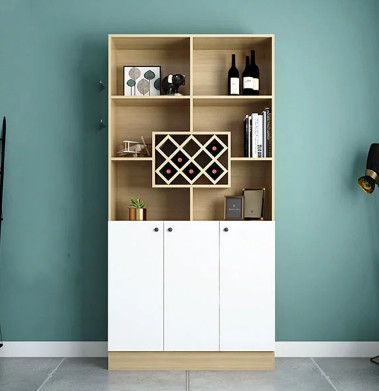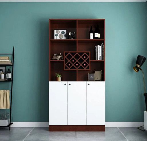 Tủ thiết kế cánh mở với nhiều ngăn kệ tiện dụng, cung cấp không gian trưng bày rượu hiện đại, góc trang trí cây cảnh, ly tách sáng tạo....